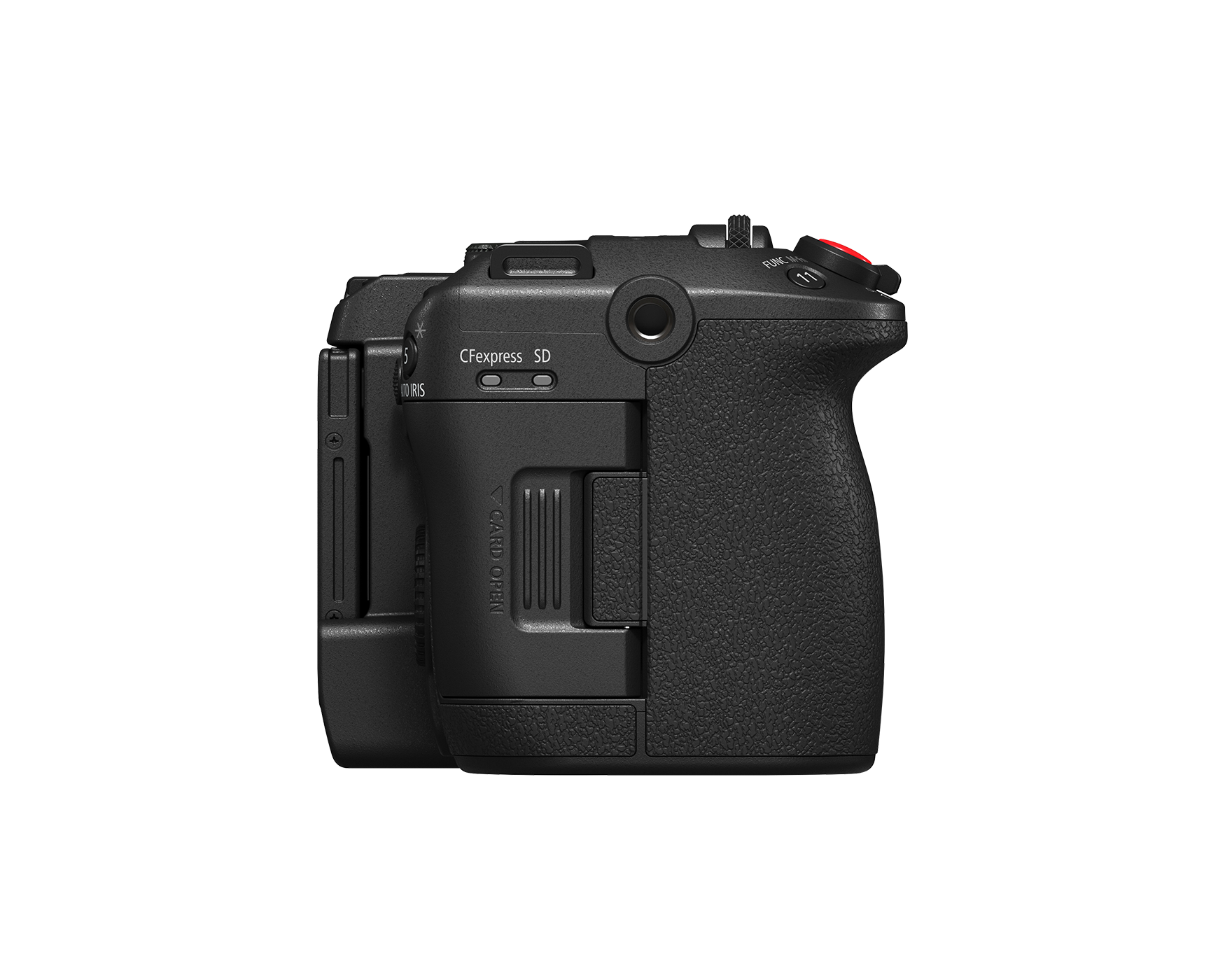 CFexpress (type B) and SD card slots on the EOS C50 allow for simultaneous recording even when shooting RAW. All recording options are recorded to the camera’s CFexpress slot with sub-recording and proxy options available on the SD card slot.