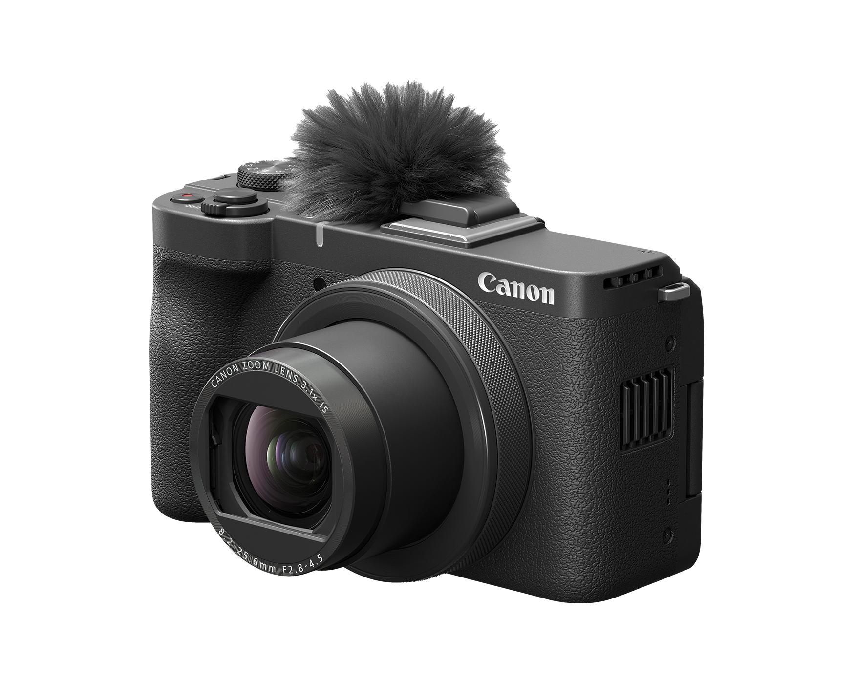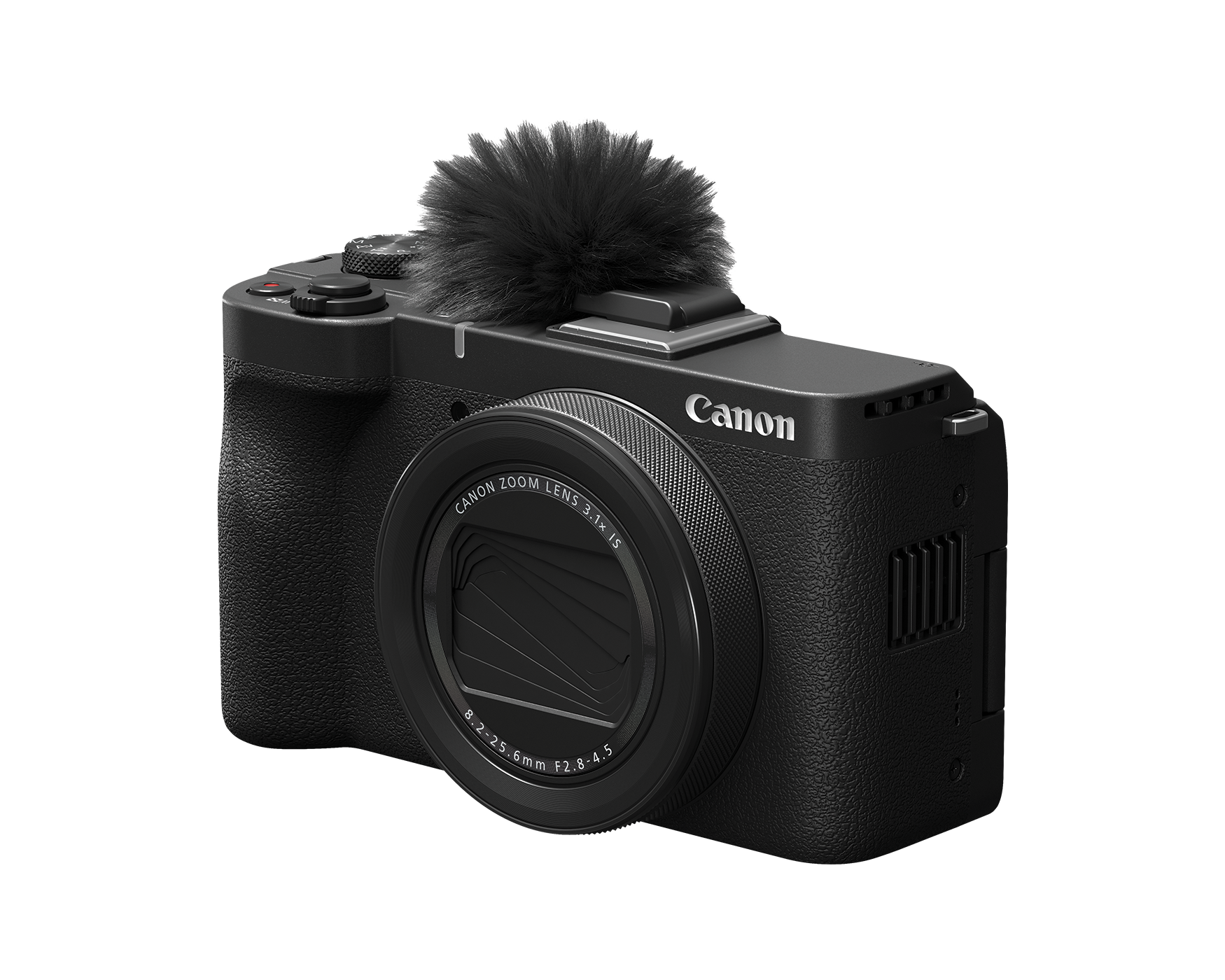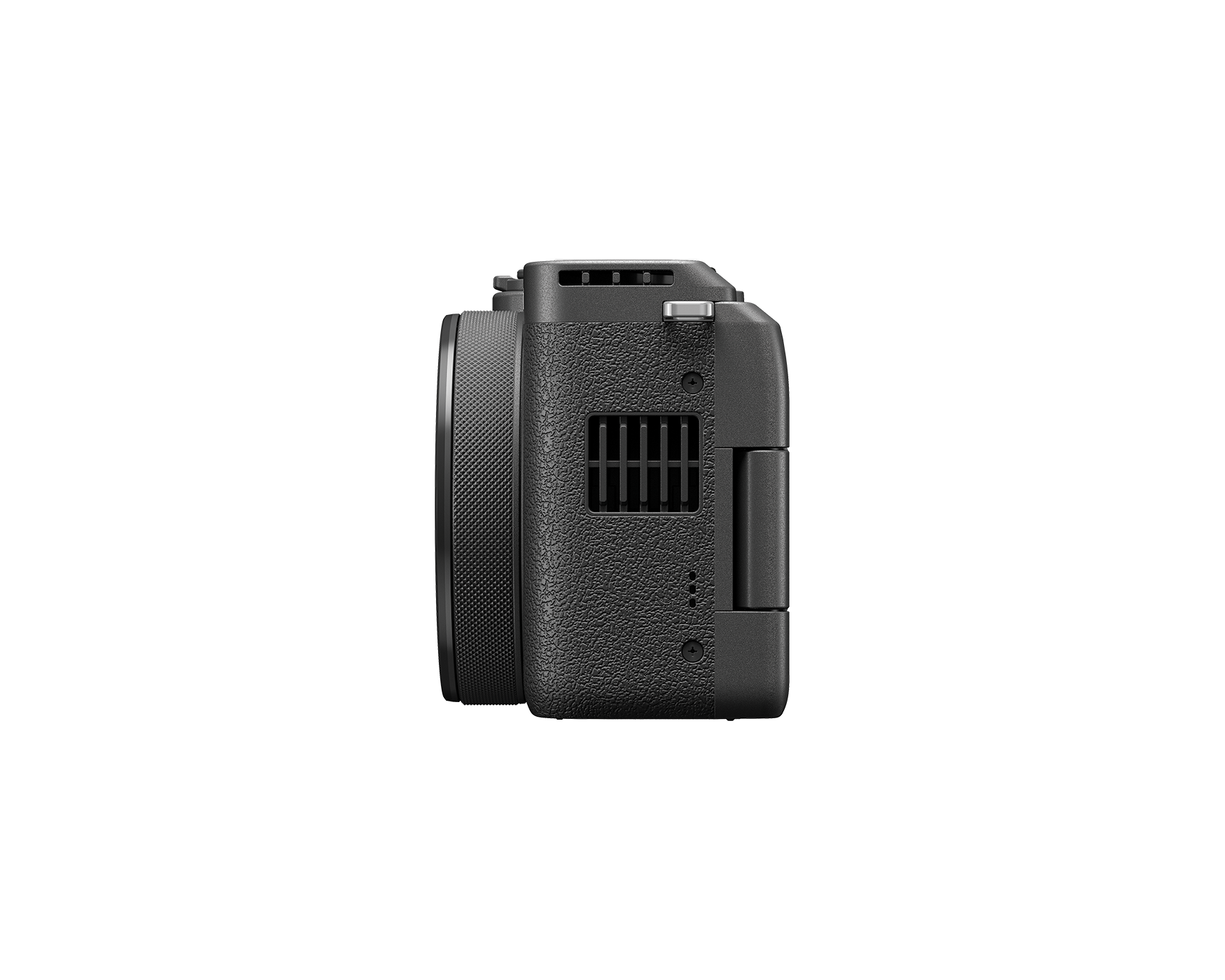 The PowerShot V1 features a cooling fan to keep internal components frm getting too hot, allowing for unlimited continuous shooting at 4K60P. The fan pulls heat from the sensor and vents it out the side to prevent overheating, which extends recording times and ensures consistency during long shoots.