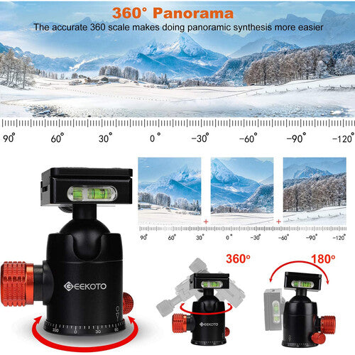 The included 360° panoramic ball head allows smooth pans. It has an independent base locking knob, and a 360° scale enables precise image alignment for panoramic and landscape photography.