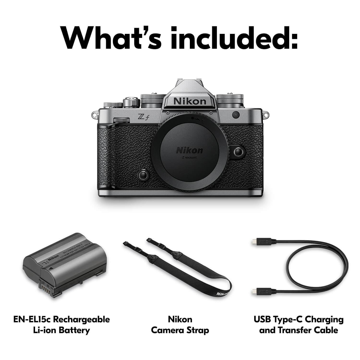 The Nikon Z f Silver combines a timeless design inspired by the chrome plating of iconic film-era cameras, with the superior power and performance of full-frame mirrorless technology. From the tactile knurling of the dials to the satisfying click of the mechanical shutter, every element of the Z f is carefully crafted to provide a refined and immersive shooting experience.
