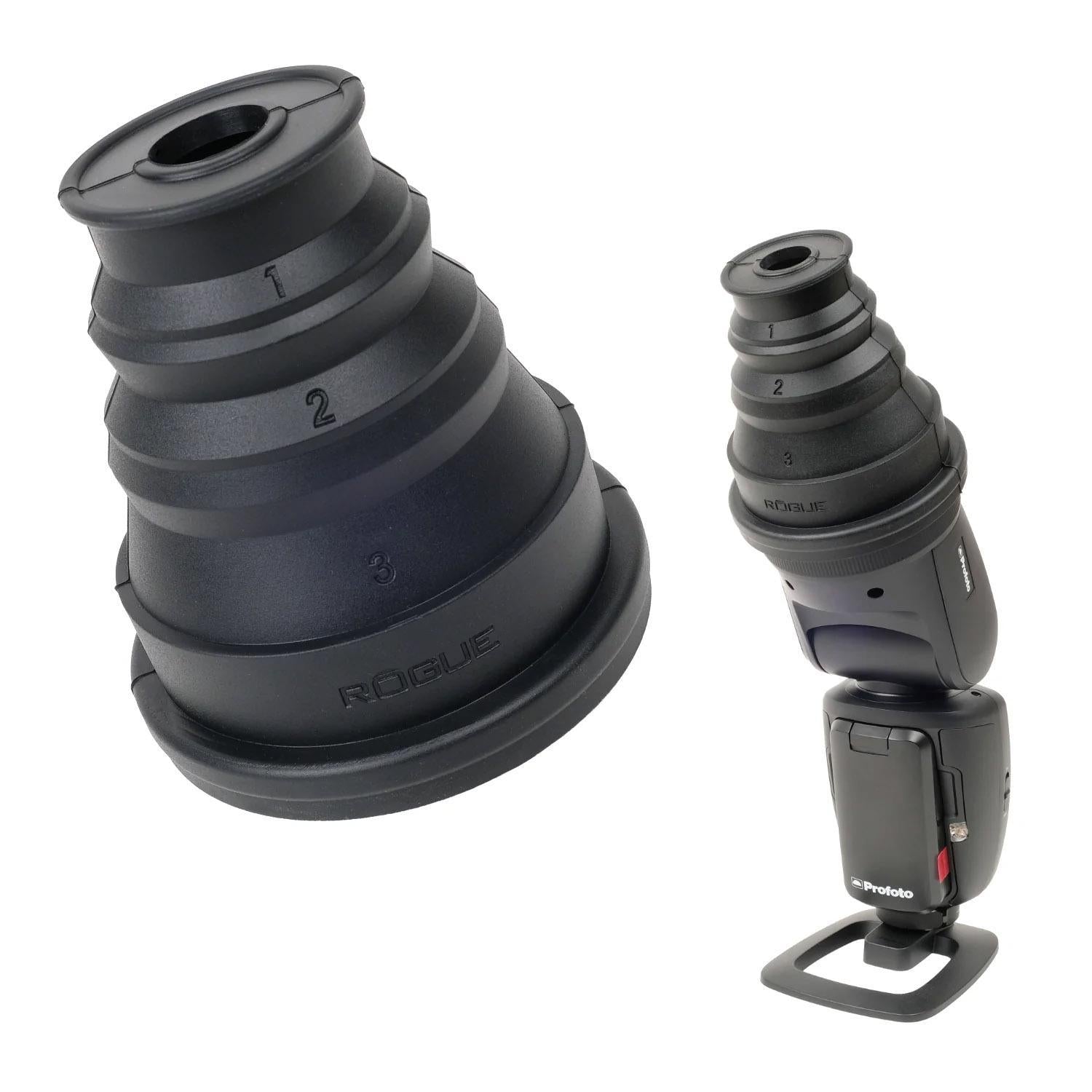 Compact and Lightweight: There’s no need to weigh yourself down with unnecessarily bulky and heavy light modifiers. The Rogue Flash Snoot weighs just 2.8oz (80g) and measures 3.5” wide x 1.5” tall (87x37mm) when collapsed. The black silicone snoot collapses for easy storage, and it can be quickly detached (if desired) from the Rogue Flash Gel Lens in its base.