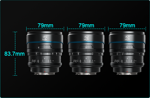 All focal lengths of the same mount have the same size. Identical 77.6mm diameter focus ring with 270°rotation angle. Identical gear position across the lenses for quick lens swaps. Matched color tone and image quality.